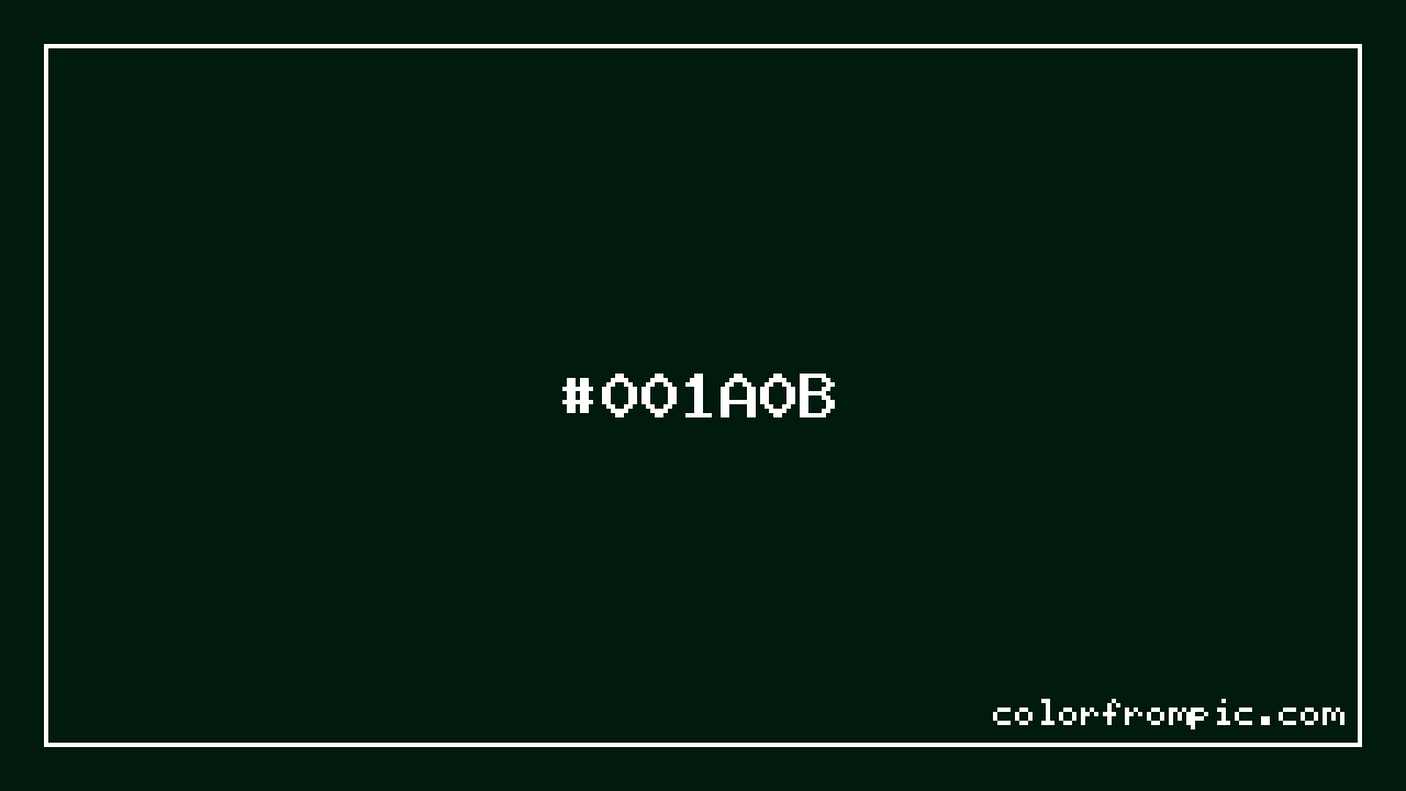 The hexadecimal color code #001A0B represents a very dark shade in the green family. In the RGB color model, this color is composed of 0 red, 26 green, and 11 blue, which translates to approximately 0% red, 10% green, and 4% blue. This makes it a highly saturated color with cool undertones that can evoke different emotional responses depending on its application.