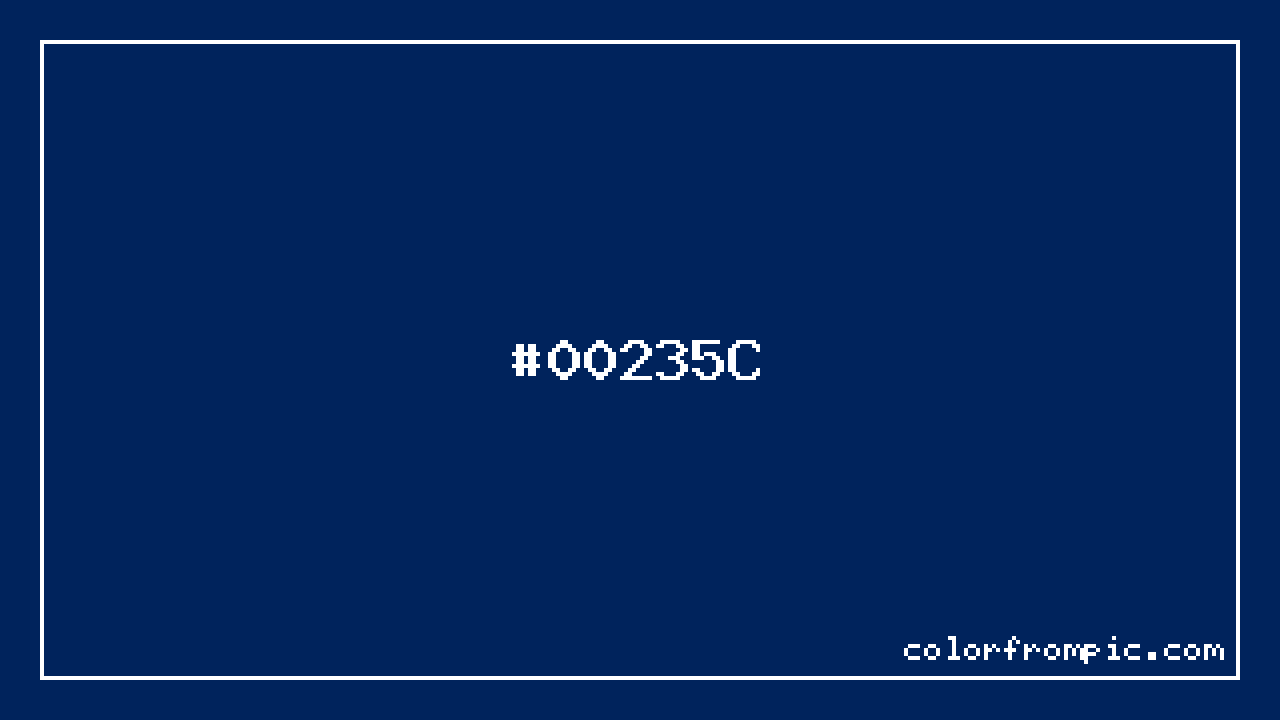 For print applications using the CMYK color model, #00235C would be reproduced using 100% cyan, 62% magenta, 0% yellow, and 64% black. The closest web-safe color is #003366, which may be useful for ensuring compatibility across older displays and systems.