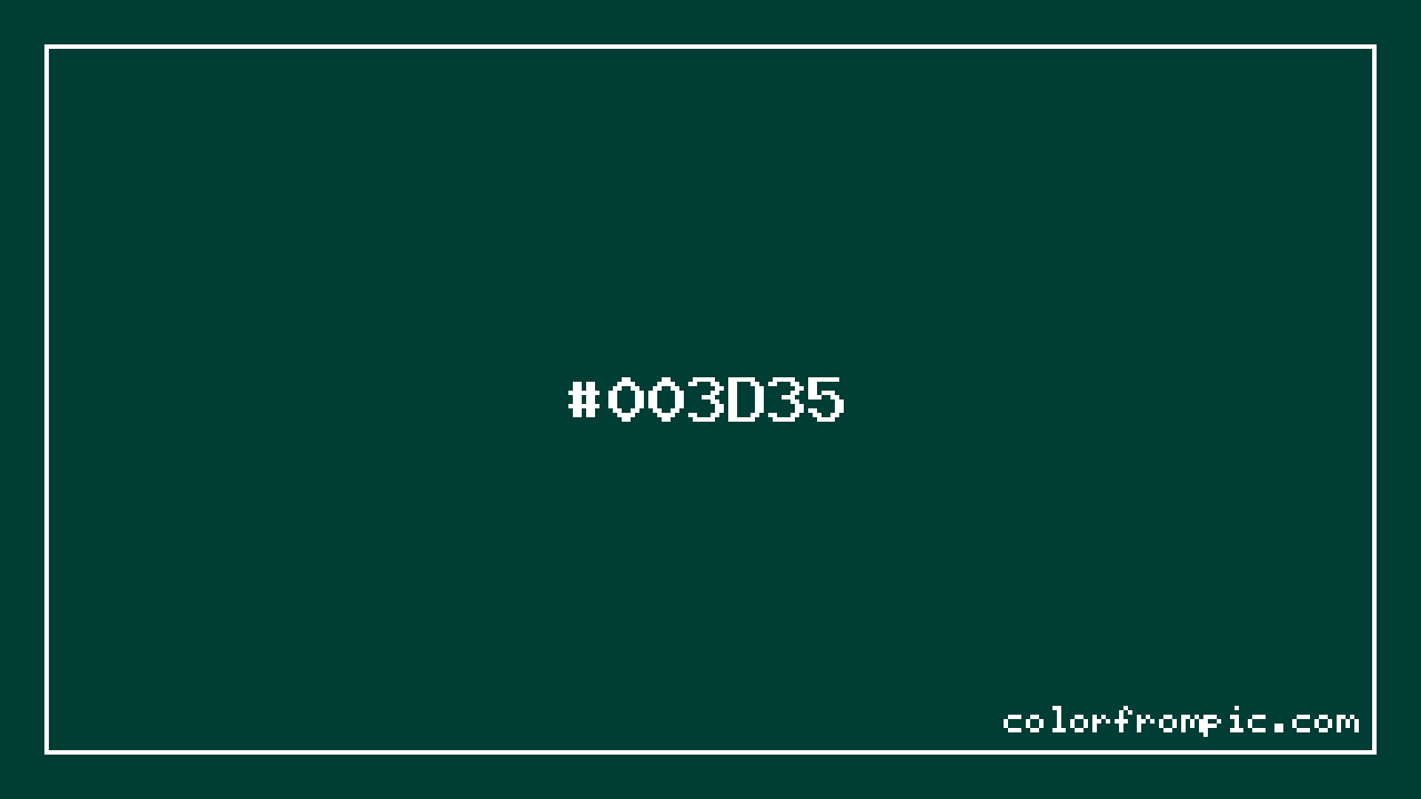 The hexadecimal color code #003D35 represents a very dark shade in the cyan family. In the RGB color model, this color is composed of 0 red, 61 green, and 53 blue, which translates to approximately 0% red, 24% green, and 21% blue. This makes it a highly saturated color with cool undertones that can evoke different emotional responses depending on its application.