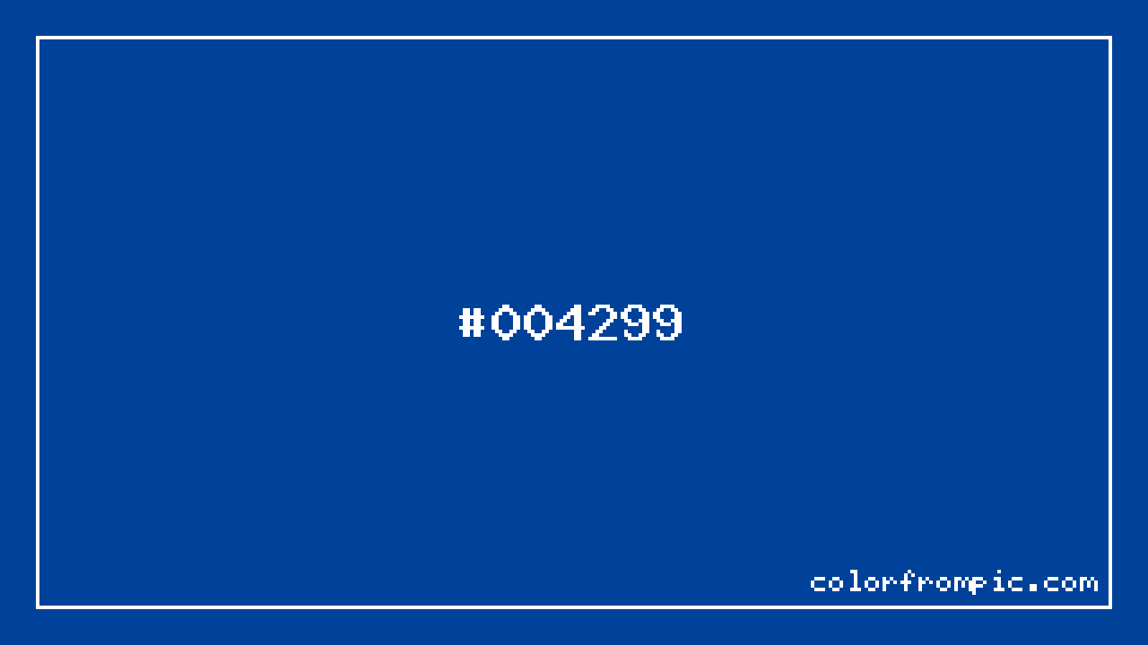 For print applications using the CMYK color model, #004299 would be reproduced using 100% cyan, 57% magenta, 0% yellow, and 40% black. The closest web-safe color is #003399, which may be useful for ensuring compatibility across older displays and systems.