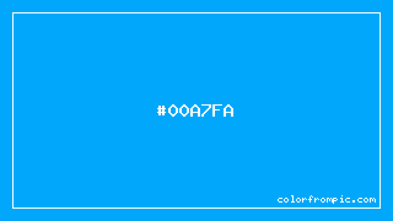 The hexadecimal color code #00A7FA represents a medium shade in the cyan family. In the RGB color model, this color is composed of 0 red, 167 green, and 250 blue, which translates to approximately 0% red, 65% green, and 98% blue. This makes it a highly saturated color with cool undertones that can evoke different emotional responses depending on its application.