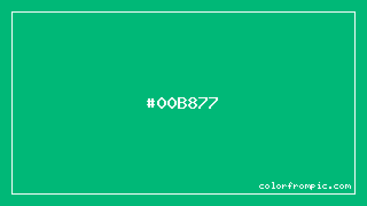 The hexadecimal color code #00B877 represents a dark shade in the cyan family. In the RGB color model, this color is composed of 0 red, 184 green, and 119 blue, which translates to approximately 0% red, 72% green, and 47% blue. This makes it a highly saturated color with cool undertones that can evoke different emotional responses depending on its application.