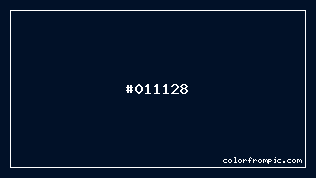 The hexadecimal color code #011128 represents a very dark shade in the blue family. In the RGB color model, this color is composed of 1 red, 17 green, and 40 blue, which translates to approximately 0% red, 7% green, and 16% blue. This makes it a highly saturated color with cool undertones that can evoke different emotional responses depending on its application.