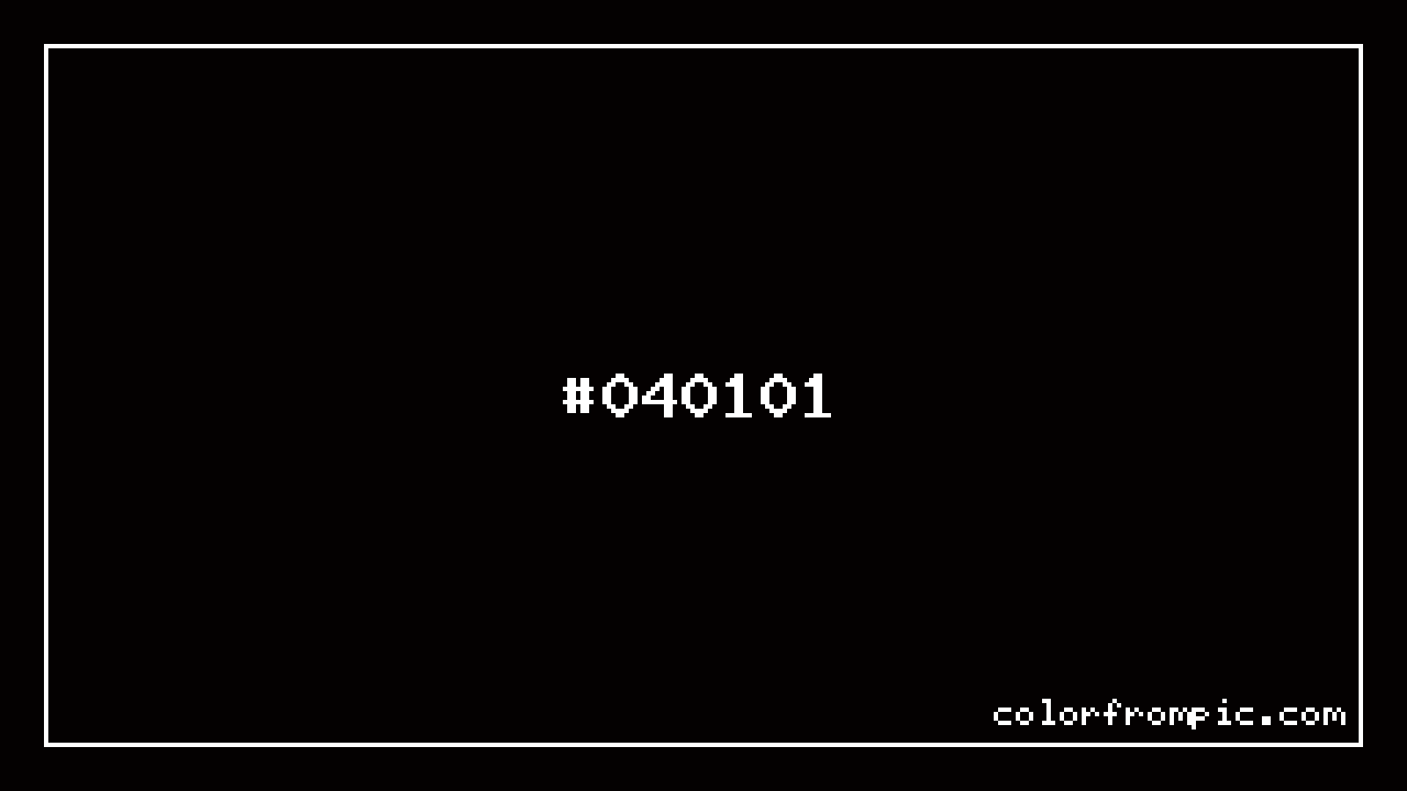 The hexadecimal color code #040101 represents a very dark shade in the red family. In the RGB color model, this color is composed of 4 red, 1 green, and 1 blue, which translates to approximately 2% red, 0% green, and 0% blue. This makes it a moderately saturated color with warm undertones that can evoke different emotional responses depending on its application.