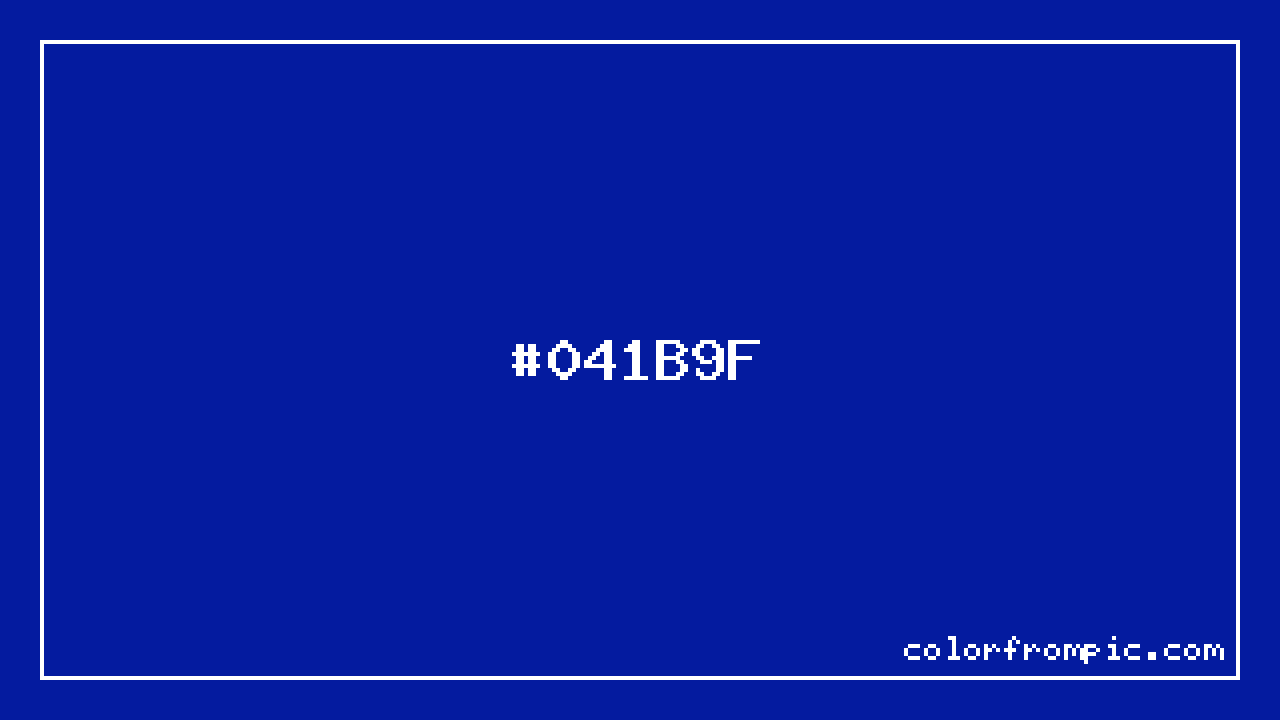 The hexadecimal color code #041B9F represents a dark shade in the blue family. In the RGB color model, this color is composed of 4 red, 27 green, and 159 blue, which translates to approximately 2% red, 11% green, and 62% blue. This makes it a highly saturated color with cool undertones that can evoke different emotional responses depending on its application.