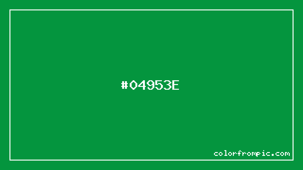 The hexadecimal color code #04953E represents a dark shade in the green family. In the RGB color model, this color is composed of 4 red, 149 green, and 62 blue, which translates to approximately 2% red, 58% green, and 24% blue. This makes it a highly saturated color with cool undertones that can evoke different emotional responses depending on its application.