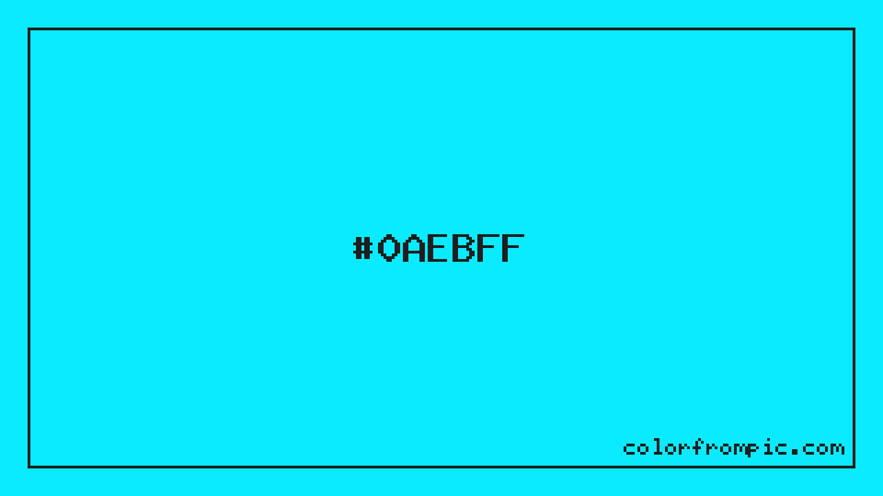 The hexadecimal color code #0AEBFF represents a medium shade in the cyan family. In the RGB color model, this color is composed of 10 red, 235 green, and 255 blue, which translates to approximately 4% red, 92% green, and 100% blue. This makes it a highly saturated color with cool undertones that can evoke different emotional responses depending on its application.
