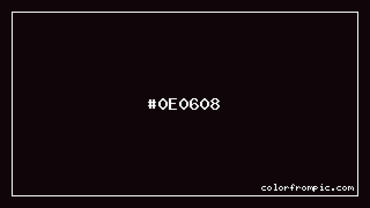 The hexadecimal color code #0E0608 represents a very dark shade in the red family. In the RGB color model, this color is composed of 14 red, 6 green, and 8 blue, which translates to approximately 5% red, 2% green, and 3% blue. This makes it a slightly desaturated color with warm undertones that can evoke different emotional responses depending on its application.