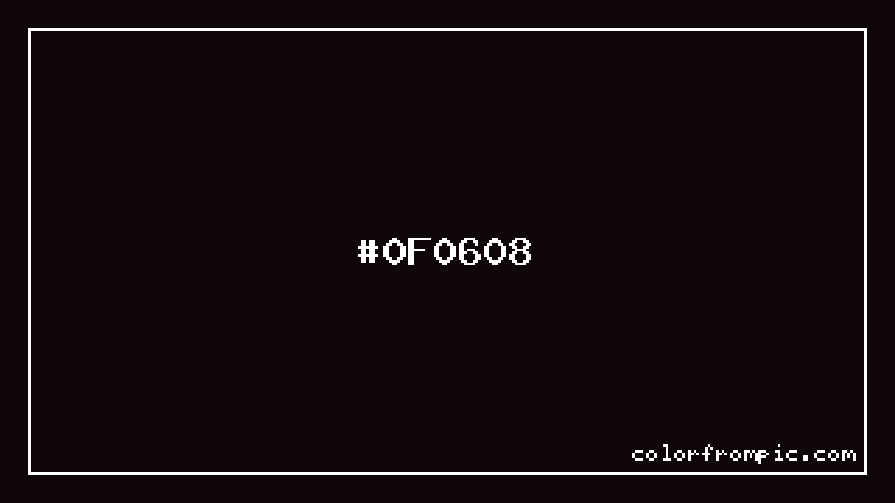 The hexadecimal color code #0F0608 represents a very dark shade in the red family. In the RGB color model, this color is composed of 15 red, 6 green, and 8 blue, which translates to approximately 6% red, 2% green, and 3% blue. This makes it a slightly desaturated color with warm undertones that can evoke different emotional responses depending on its application.