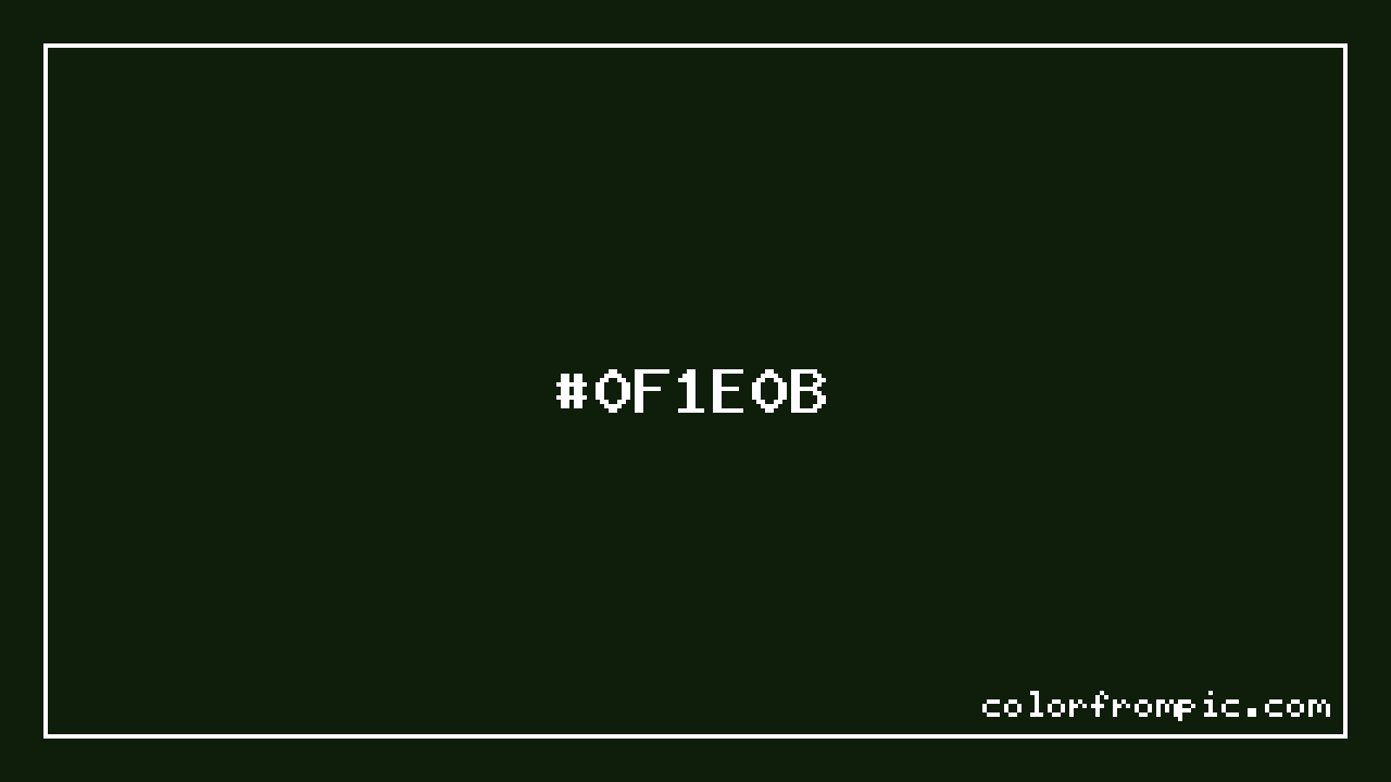 The hexadecimal color code #0F1E0B represents a very dark shade in the green family. In the RGB color model, this color is composed of 15 red, 30 green, and 11 blue, which translates to approximately 6% red, 12% green, and 4% blue. This makes it a slightly desaturated color with cool undertones that can evoke different emotional responses depending on its application.