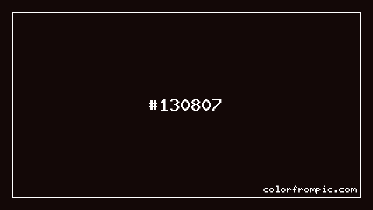 The hexadecimal color code #130807 represents a very dark shade in the red family. In the RGB color model, this color is composed of 19 red, 8 green, and 7 blue, which translates to approximately 7% red, 3% green, and 3% blue. This makes it a slightly desaturated color with warm undertones that can evoke different emotional responses depending on its application.