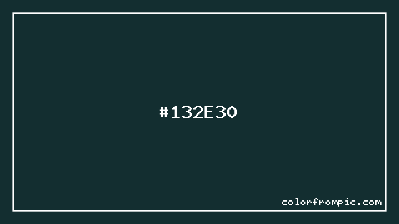 The HEX code for Deep Cyan is #132E30. In CSS you can use it directly as color: #132E30; or as a background: background-color: #132E30;. The three-character shorthand is not available for this color since it cannot be reduced without changing the value. Use the full six-character hex for accurate reproduction in any web or design project.