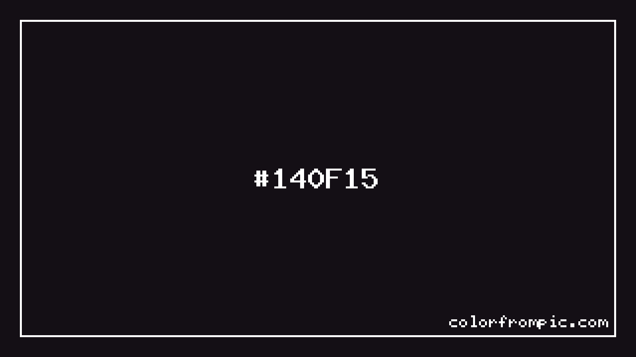 The hexadecimal color code #140F15 represents a very dark shade in the purple family. In the RGB color model, this color is composed of 20 red, 15 green, and 21 blue, which translates to approximately 8% red, 6% green, and 8% blue. This makes it a nearly neutral color with cool undertones that can evoke different emotional responses depending on its application.