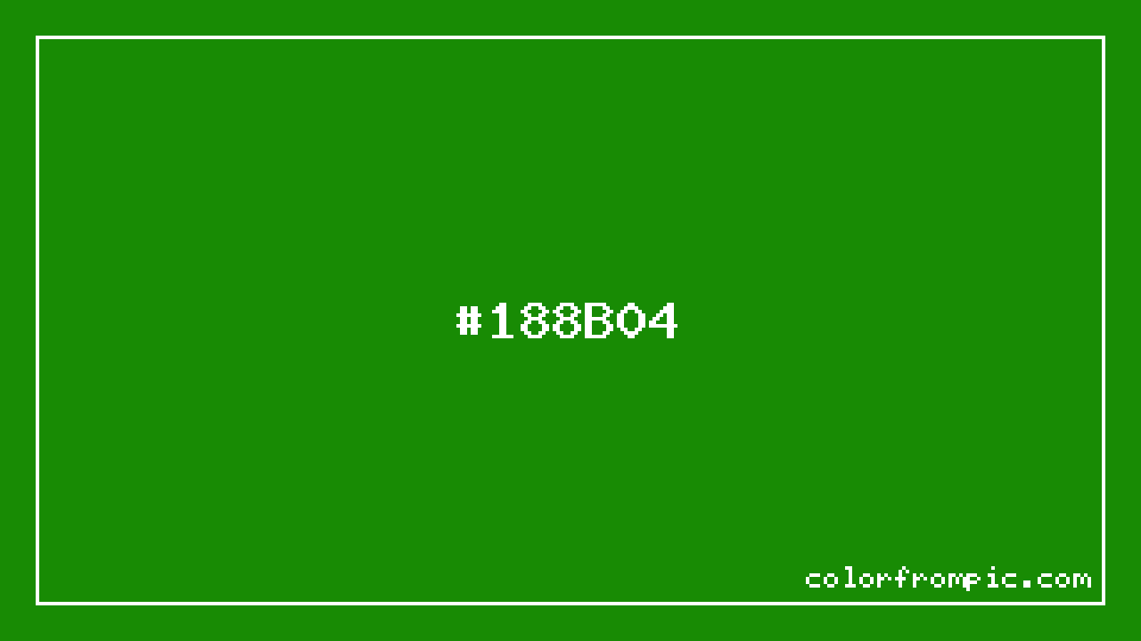The hexadecimal color code #188B04 represents a dark shade in the green family. In the RGB color model, this color is composed of 24 red, 139 green, and 4 blue, which translates to approximately 9% red, 55% green, and 2% blue. This makes it a highly saturated color with cool undertones that can evoke different emotional responses depending on its application.
