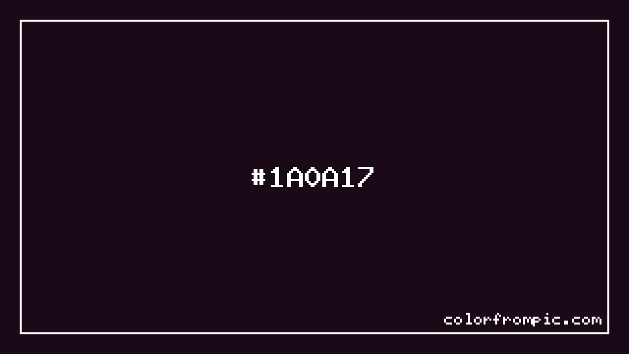 The hexadecimal color code #1A0A17 represents a very dark shade in the purple family. In the RGB color model, this color is composed of 26 red, 10 green, and 23 blue, which translates to approximately 10% red, 4% green, and 9% blue. This makes it a slightly desaturated color with warm undertones that can evoke different emotional responses depending on its application.