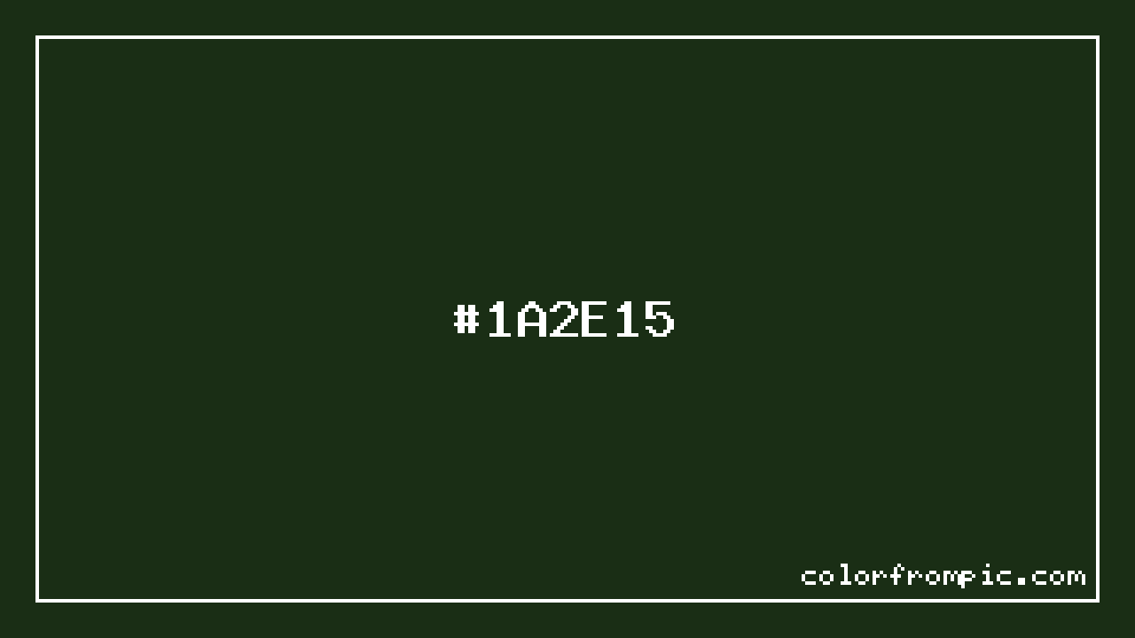The hexadecimal color code #1A2E15 represents a very dark shade in the green family. In the RGB color model, this color is composed of 26 red, 46 green, and 21 blue, which translates to approximately 10% red, 18% green, and 8% blue. This makes it a slightly desaturated color with cool undertones that can evoke different emotional responses depending on its application.