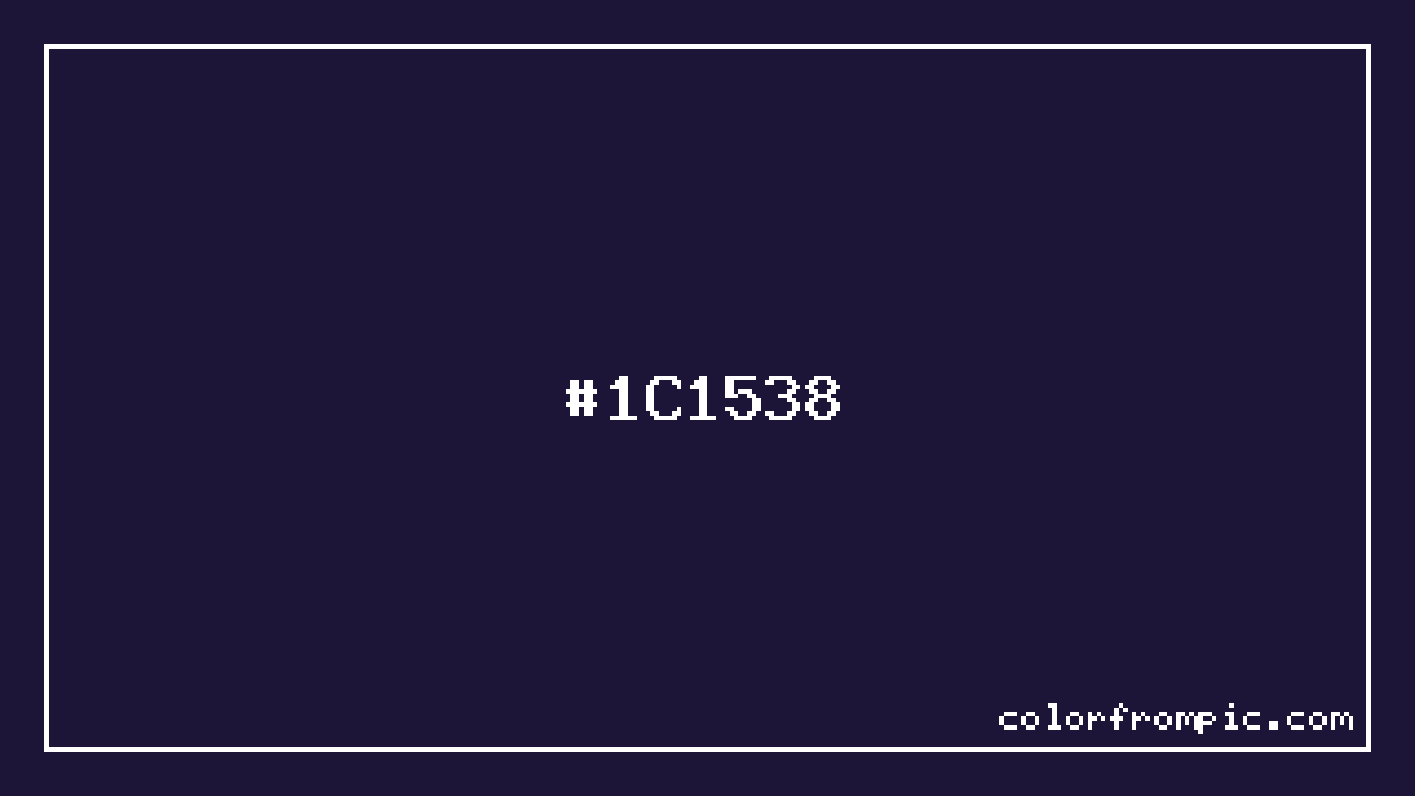 The hexadecimal color code #1C1538 represents a very dark shade in the blue family. In the RGB color model, this color is composed of 28 red, 21 green, and 56 blue, which translates to approximately 11% red, 8% green, and 22% blue. This makes it a slightly desaturated color with cool undertones that can evoke different emotional responses depending on its application.