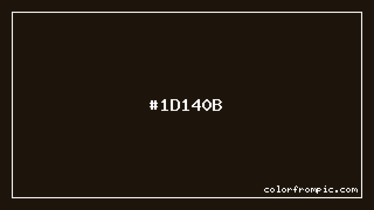 The RGB value of #1D140B is rgb(29, 20, 11). This means the color contains 29 out of 255 parts red, 20 out of 255 parts green, and 11 out of 255 parts blue. Red is the strongest channel in this color mix. You can use the full RGB function in any CSS property: color: rgb(29, 20, 11);