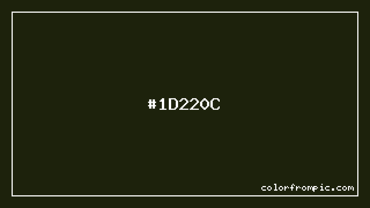 The hexadecimal color code #1D220C represents a very dark shade in the yellow family. In the RGB color model, this color is composed of 29 red, 34 green, and 12 blue, which translates to approximately 11% red, 13% green, and 5% blue. This makes it a slightly desaturated color with cool undertones that can evoke different emotional responses depending on its application.