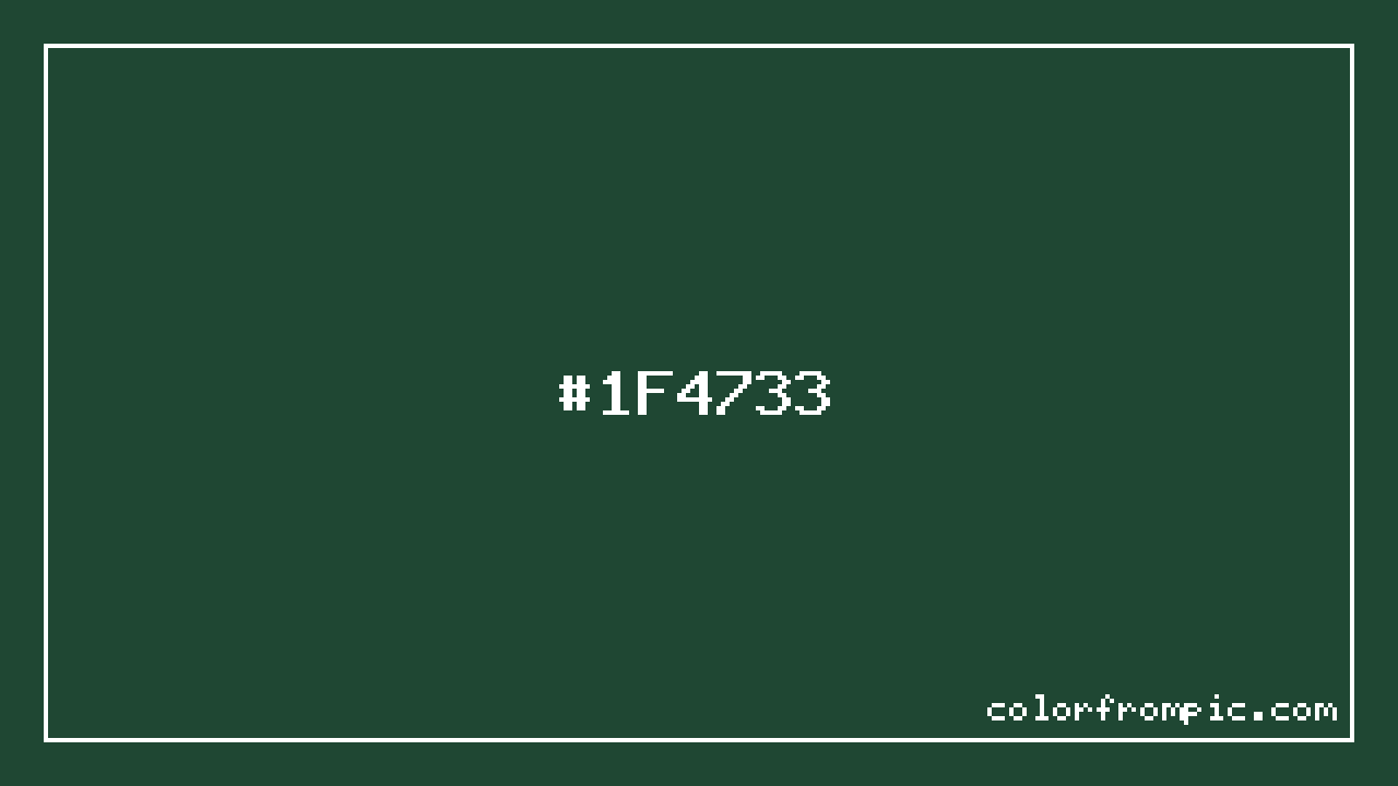 The RGB value of #1F4733 is rgb(31, 71, 51). This means the color contains 31 out of 255 parts red, 71 out of 255 parts green, and 51 out of 255 parts blue. Red is the weakest (with blue dominant) channel in this color mix. You can use the full RGB function in any CSS property: color: rgb(31, 71, 51);