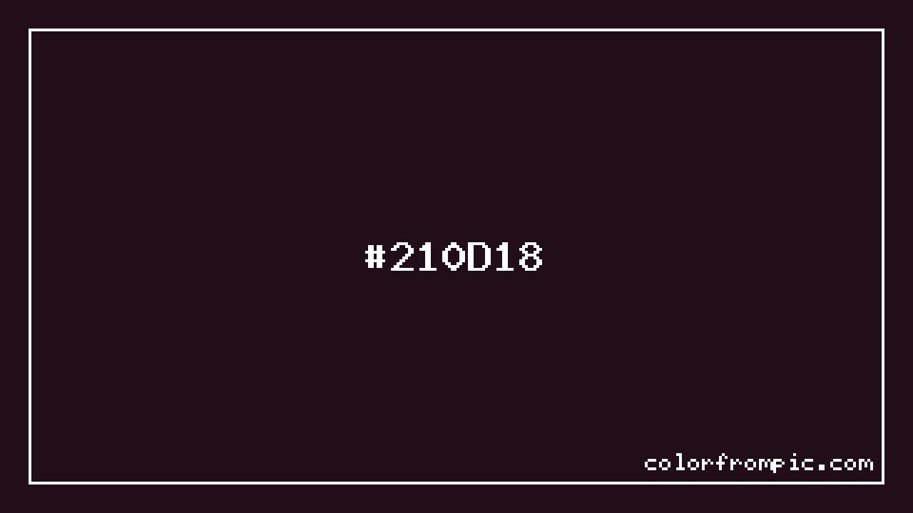 The hexadecimal color code #210D18 represents a very dark shade in the purple family. In the RGB color model, this color is composed of 33 red, 13 green, and 24 blue, which translates to approximately 13% red, 5% green, and 9% blue. This makes it a slightly desaturated color with warm undertones that can evoke different emotional responses depending on its application.