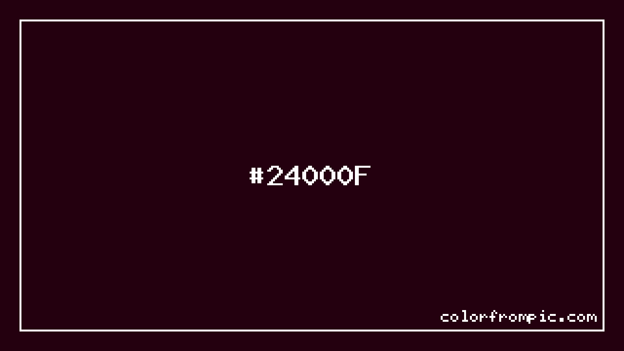 The hexadecimal color code #24000F represents a very dark shade in the red family. In the RGB color model, this color is composed of 36 red, 0 green, and 15 blue, which translates to approximately 14% red, 0% green, and 6% blue. This makes it a highly saturated color with warm undertones that can evoke different emotional responses depending on its application.