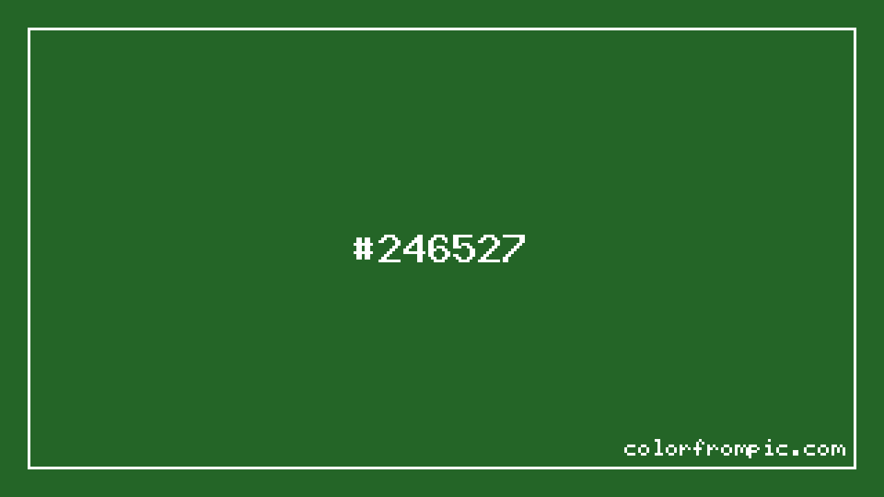 For print applications using the CMYK color model, #246527 would be reproduced using 64% cyan, 0% magenta, 61% yellow, and 60% black. The closest web-safe color is #336633, which may be useful for ensuring compatibility across older displays and systems.