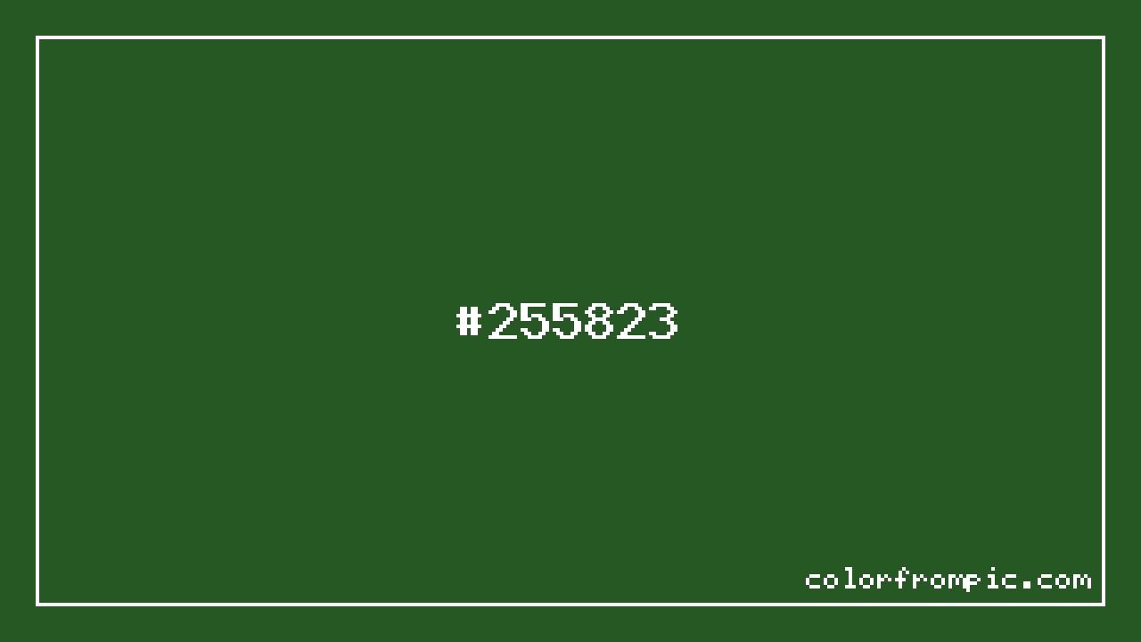 The hexadecimal color code #255823 represents a dark shade in the green family. In the RGB color model, this color is composed of 37 red, 88 green, and 35 blue, which translates to approximately 15% red, 35% green, and 14% blue. This makes it a slightly desaturated color with cool undertones that can evoke different emotional responses depending on its application.