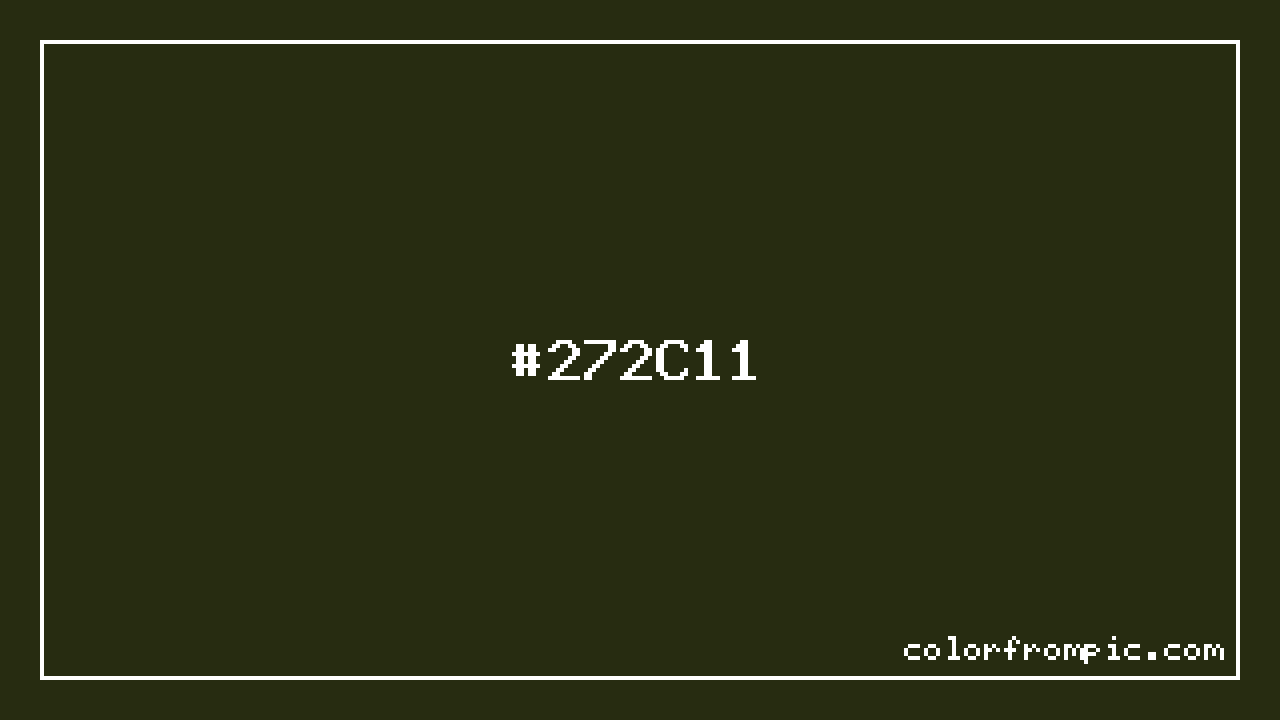 For print applications using the CMYK color model, #272C11 would be reproduced using 11% cyan, 0% magenta, 61% yellow, and 83% black. The closest web-safe color is #333300, which may be useful for ensuring compatibility across older displays and systems.