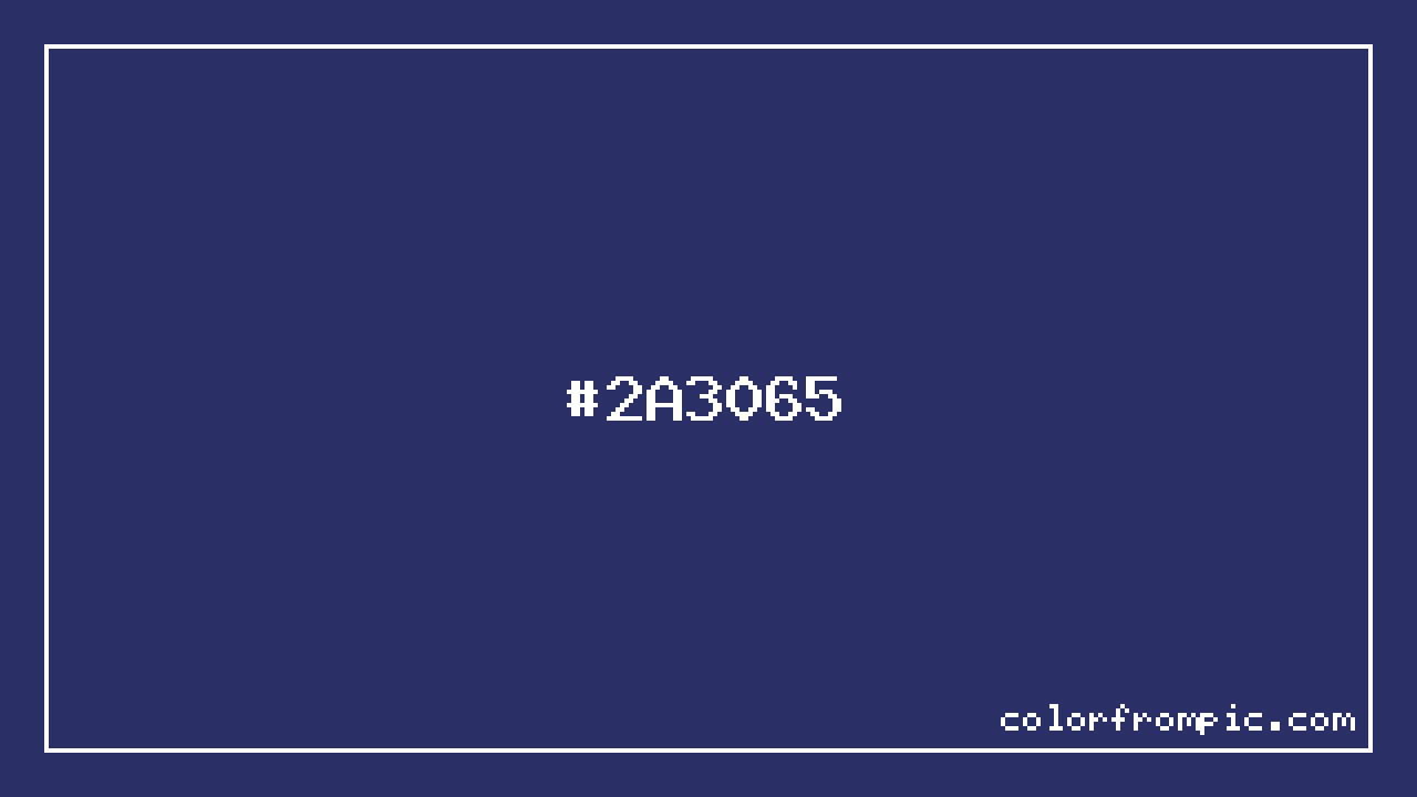 The hexadecimal color code #2A3065 represents a dark shade in the blue family. In the RGB color model, this color is composed of 42 red, 48 green, and 101 blue, which translates to approximately 16% red, 19% green, and 40% blue. This makes it a slightly desaturated color with cool undertones that can evoke different emotional responses depending on its application.
