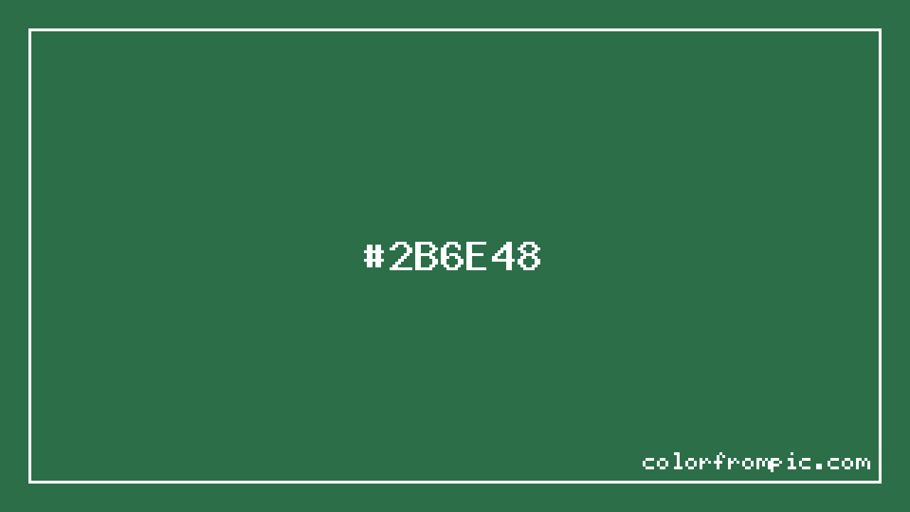 The hexadecimal color code #2B6E48 represents a dark shade in the green family. In the RGB color model, this color is composed of 43 red, 110 green, and 72 blue, which translates to approximately 17% red, 43% green, and 28% blue. This makes it a slightly desaturated color with cool undertones that can evoke different emotional responses depending on its application.