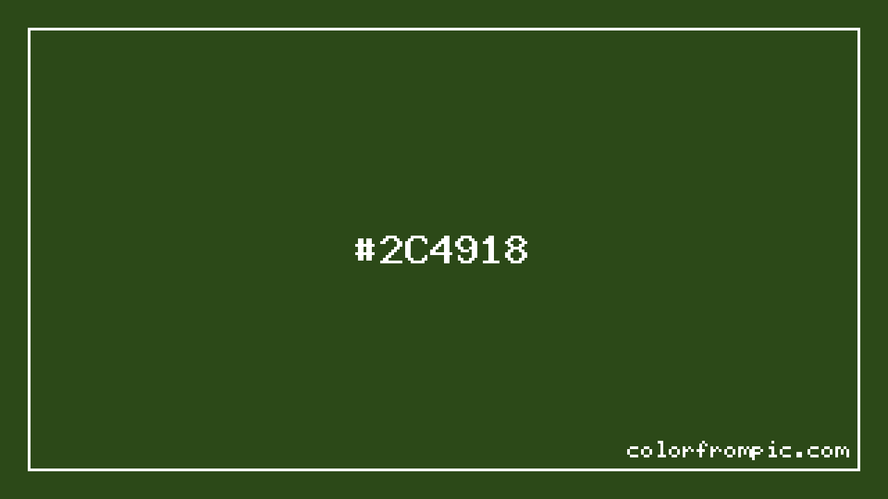 The hexadecimal color code #2C4918 represents a very dark shade in the green family. In the RGB color model, this color is composed of 44 red, 73 green, and 24 blue, which translates to approximately 17% red, 29% green, and 9% blue. This makes it a moderately saturated color with cool undertones that can evoke different emotional responses depending on its application.