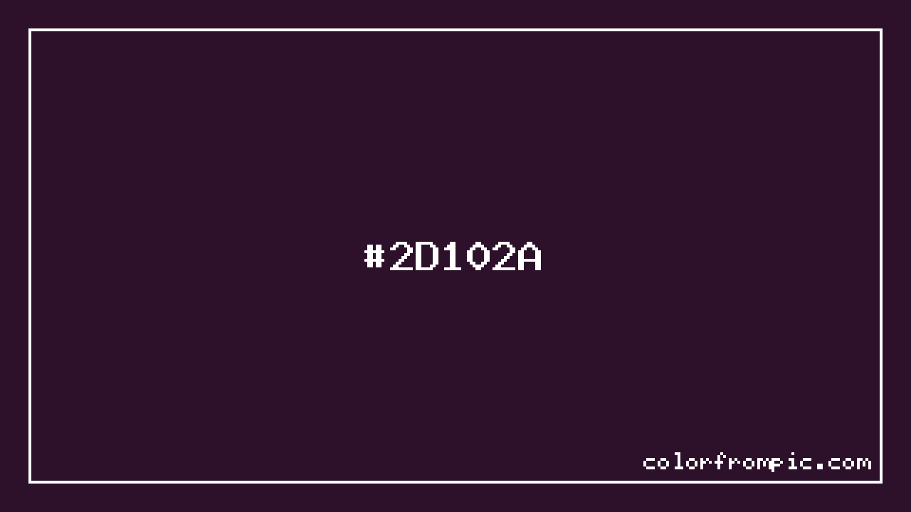 The hexadecimal color code #2D102A represents a very dark shade in the purple family. In the RGB color model, this color is composed of 45 red, 16 green, and 42 blue, which translates to approximately 18% red, 6% green, and 16% blue. This makes it a slightly desaturated color with warm undertones that can evoke different emotional responses depending on its application.