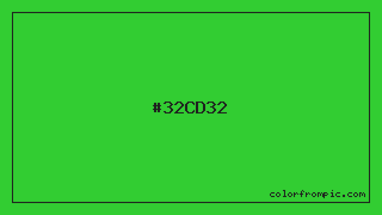 The hexadecimal color code #32CD32 represents a medium shade in the green family. In the RGB color model, this color is composed of 50 red, 205 green, and 50 blue, which translates to approximately 20% red, 80% green, and 20% blue. This makes it a moderately saturated color with cool undertones that can evoke different emotional responses depending on its application. When analyzed in the HSL (Hue, Saturation, Lightness) color space, #32CD32 has a hue of 120 degrees, a saturation level of 61%, and a lightness value of 50%. The hue angle of places this color firmly in the green spectrum. In the HSV/HSB color model, this translates to a hue of , saturation of 76%, and brightness/value of 80%. For print applications using the CMYK color model, #32CD32 would be reproduced using 76% cyan, 0% magenta, 76% yellow, and 20% black. The closest web-safe color is #33CC33, which may be useful for ensuring compatibility across older displays and systems. This color works well in various design contexts. With its medium lightness, it's versatile enough for both foreground elements and subtle backgrounds. The high saturation makes this color vibrant and attention-grabbing, ideal for call-to-action buttons, highlights, and accent elements. When pairing #32CD32 with other colors, consider its complementary color at hue 300° for maximum contrast, or use analogous colors within 30° of its hue for harmonious combinations. The decimal representation of this color is 3329330, which can be useful in certain programming contexts.