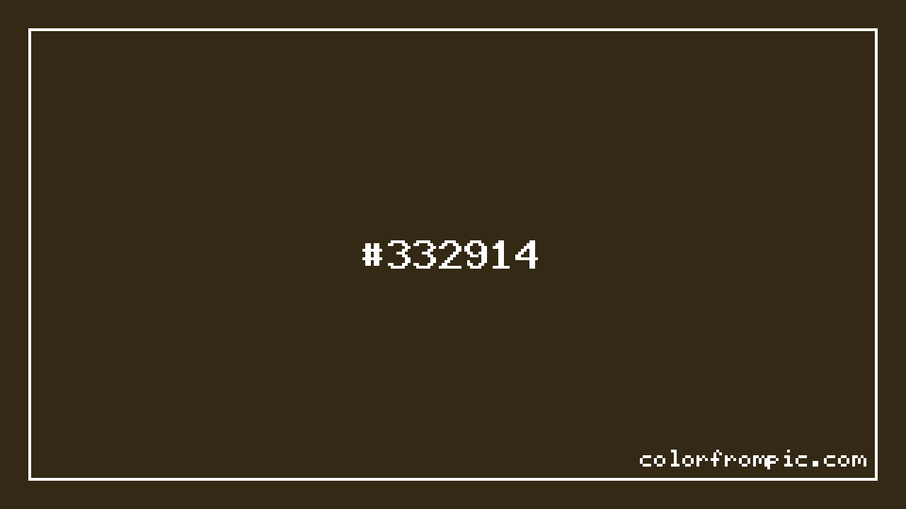 The hexadecimal color code #332914 represents a very dark shade in the orange family. In the RGB color model, this color is composed of 51 red, 41 green, and 20 blue, which translates to approximately 20% red, 16% green, and 8% blue. This makes it a slightly desaturated color with warm undertones that can evoke different emotional responses depending on its application.