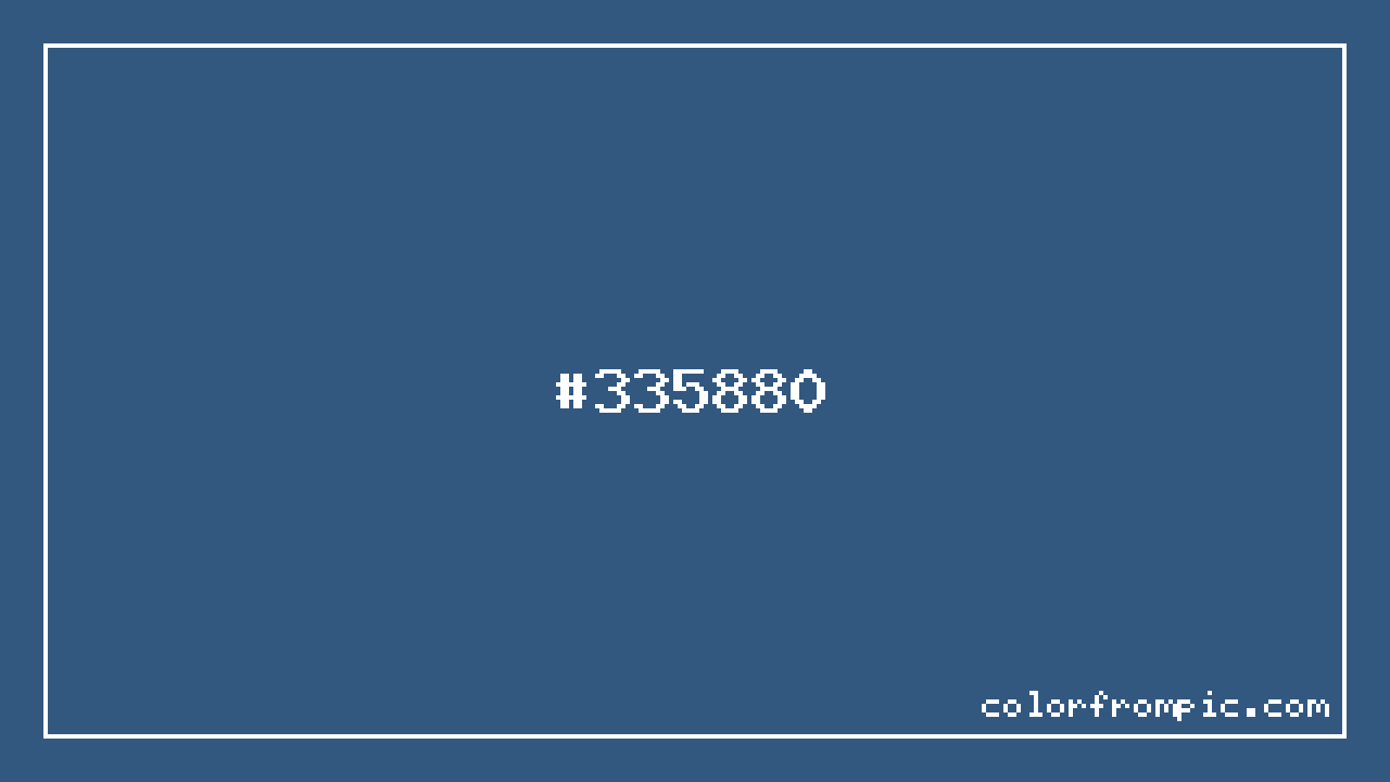 For print applications using the CMYK color model, #335880 would be reproduced using 60% cyan, 31% magenta, 0% yellow, and 50% black. The closest web-safe color is #336699, which may be useful for ensuring compatibility across older displays and systems.
