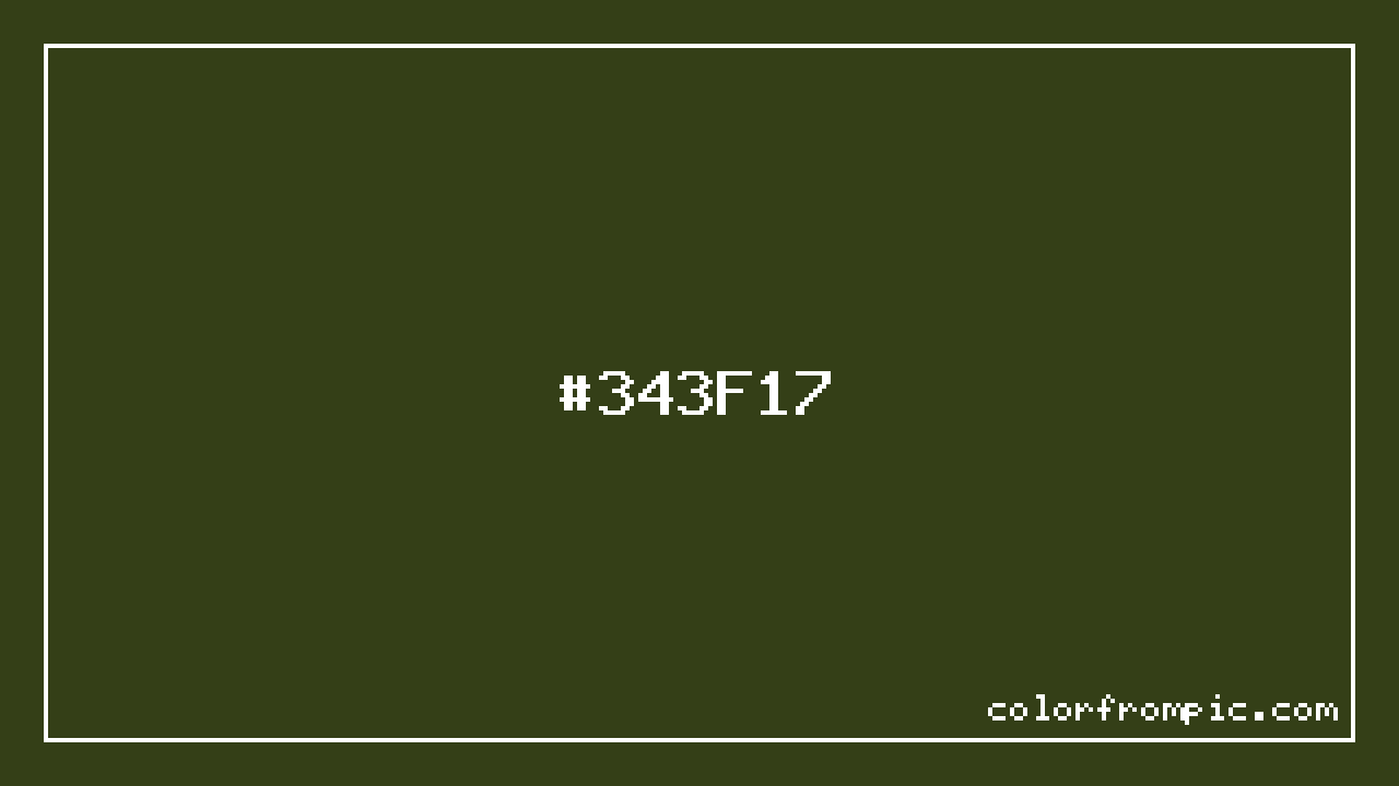 For print applications using the CMYK color model, #343F17 would be reproduced using 17% cyan, 0% magenta, 63% yellow, and 75% black. The closest web-safe color is #333300, which may be useful for ensuring compatibility across older displays and systems.