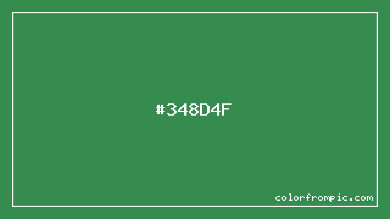 The hexadecimal color code #348D4F represents a dark shade in the green family. In the RGB color model, this color is composed of 52 red, 141 green, and 79 blue, which translates to approximately 20% red, 55% green, and 31% blue. This makes it a slightly desaturated color with cool undertones that can evoke different emotional responses depending on its application.