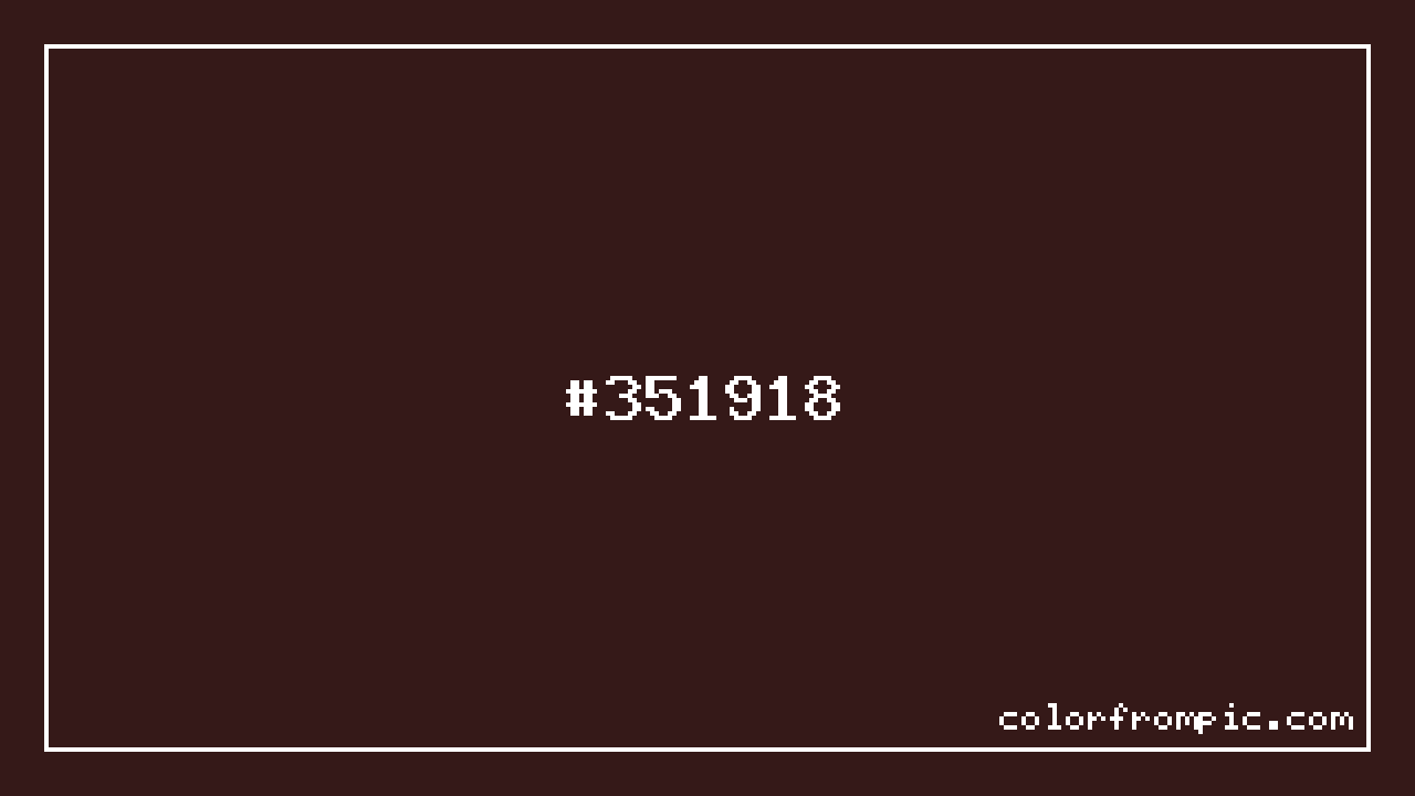 The hexadecimal color code #351918 represents a very dark shade in the red family. In the RGB color model, this color is composed of 53 red, 25 green, and 24 blue, which translates to approximately 21% red, 10% green, and 9% blue. This makes it a slightly desaturated color with warm undertones that can evoke different emotional responses depending on its application.