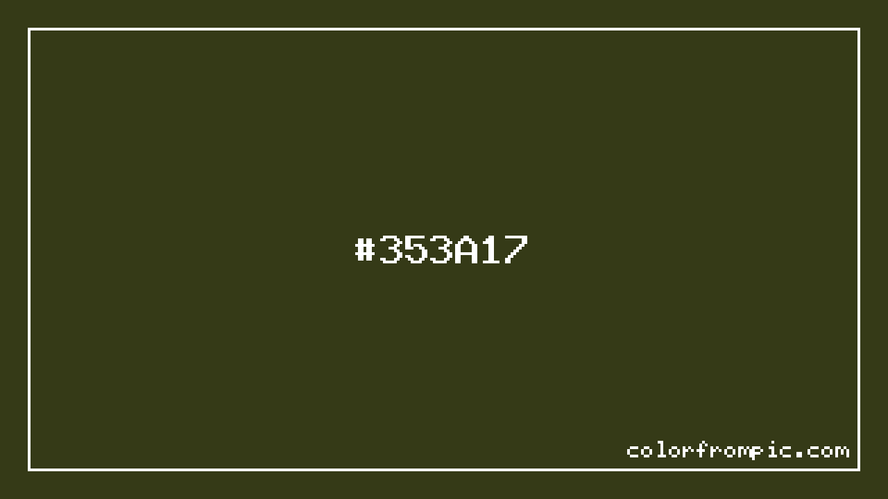 For print applications using the CMYK color model, #353A17 would be reproduced using 9% cyan, 0% magenta, 60% yellow, and 77% black. The closest web-safe color is #333300, which may be useful for ensuring compatibility across older displays and systems.