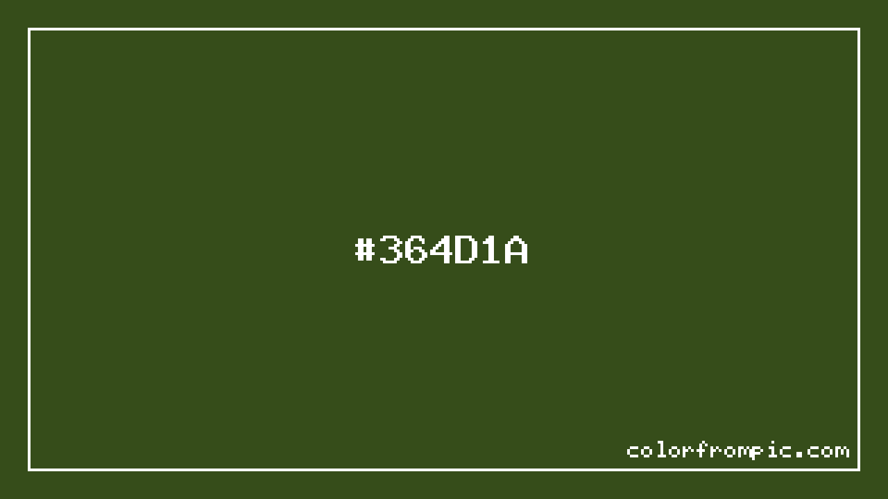 The hexadecimal color code #364D1A represents a very dark shade in the yellow family. In the RGB color model, this color is composed of 54 red, 77 green, and 26 blue, which translates to approximately 21% red, 30% green, and 10% blue. This makes it a slightly desaturated color with cool undertones that can evoke different emotional responses depending on its application.