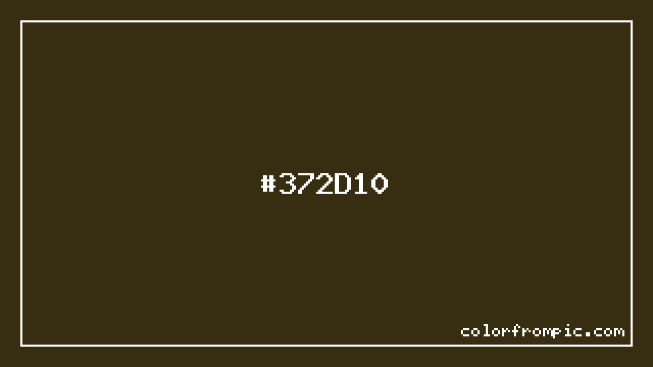 The hexadecimal color code #372D10 represents a very dark shade in the orange family. In the RGB color model, this color is composed of 55 red, 45 green, and 16 blue, which translates to approximately 22% red, 18% green, and 6% blue. This makes it a moderately saturated color with warm undertones that can evoke different emotional responses depending on its application.