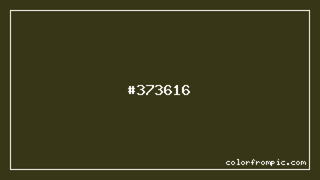 For print applications using the CMYK color model, #373616 would be reproduced using 0% cyan, 2% magenta, 60% yellow, and 78% black. The closest web-safe color is #333300, which may be useful for ensuring compatibility across older displays and systems.