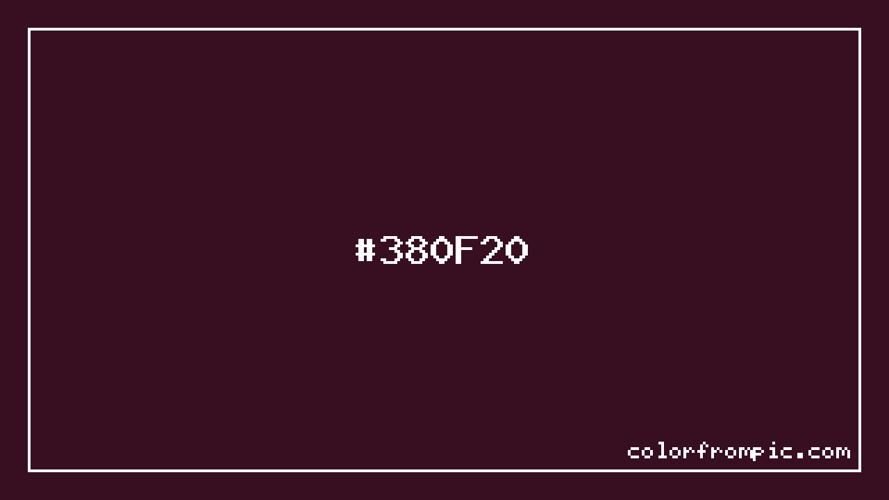 The hexadecimal color code #380F20 represents a very dark shade in the red family. In the RGB color model, this color is composed of 56 red, 15 green, and 32 blue, which translates to approximately 22% red, 6% green, and 13% blue. This makes it a moderately saturated color with warm undertones that can evoke different emotional responses depending on its application.