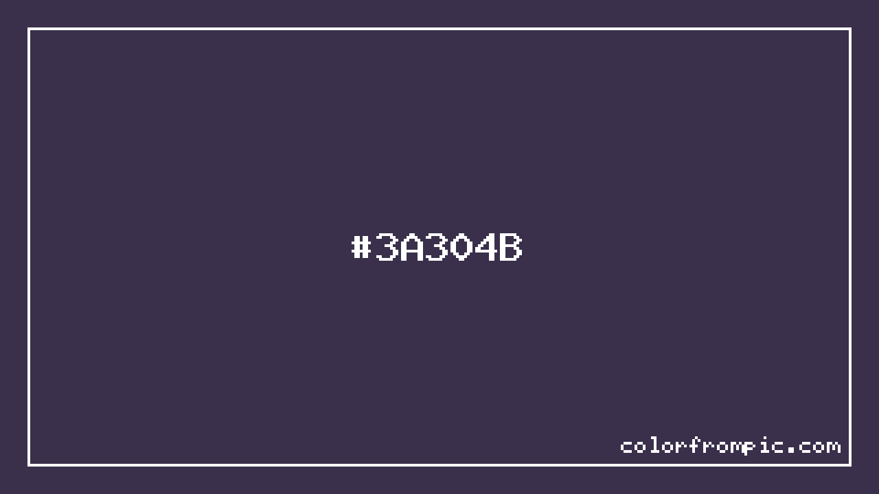 The HEX code for Deep Muted Violet is #3A304B. In CSS you can use it directly as color: #3A304B; or as a background: background-color: #3A304B;. The three-character shorthand is not available for this color since it cannot be reduced without changing the value. Use the full six-character hex for accurate reproduction in any web or design project.