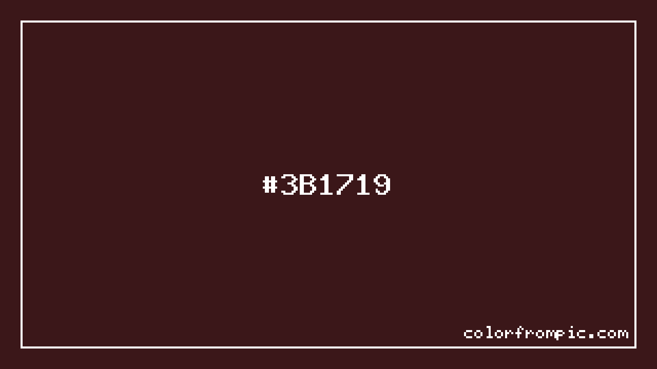 The hexadecimal color code #3B1719 represents a very dark shade in the red family. In the RGB color model, this color is composed of 59 red, 23 green, and 25 blue, which translates to approximately 23% red, 9% green, and 10% blue. This makes it a slightly desaturated color with warm undertones that can evoke different emotional responses depending on its application.