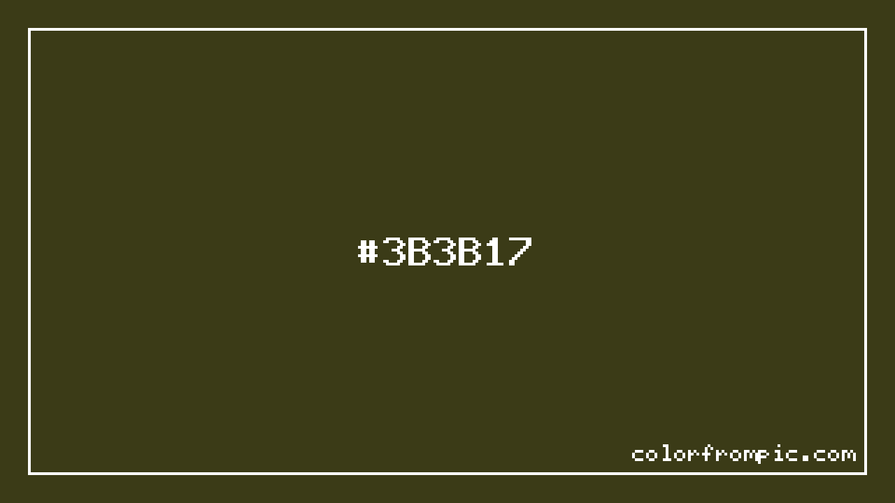 For print applications using the CMYK color model, #3B3B17 would be reproduced using 0% cyan, 0% magenta, 61% yellow, and 77% black. The closest web-safe color is #333300, which may be useful for ensuring compatibility across older displays and systems.
