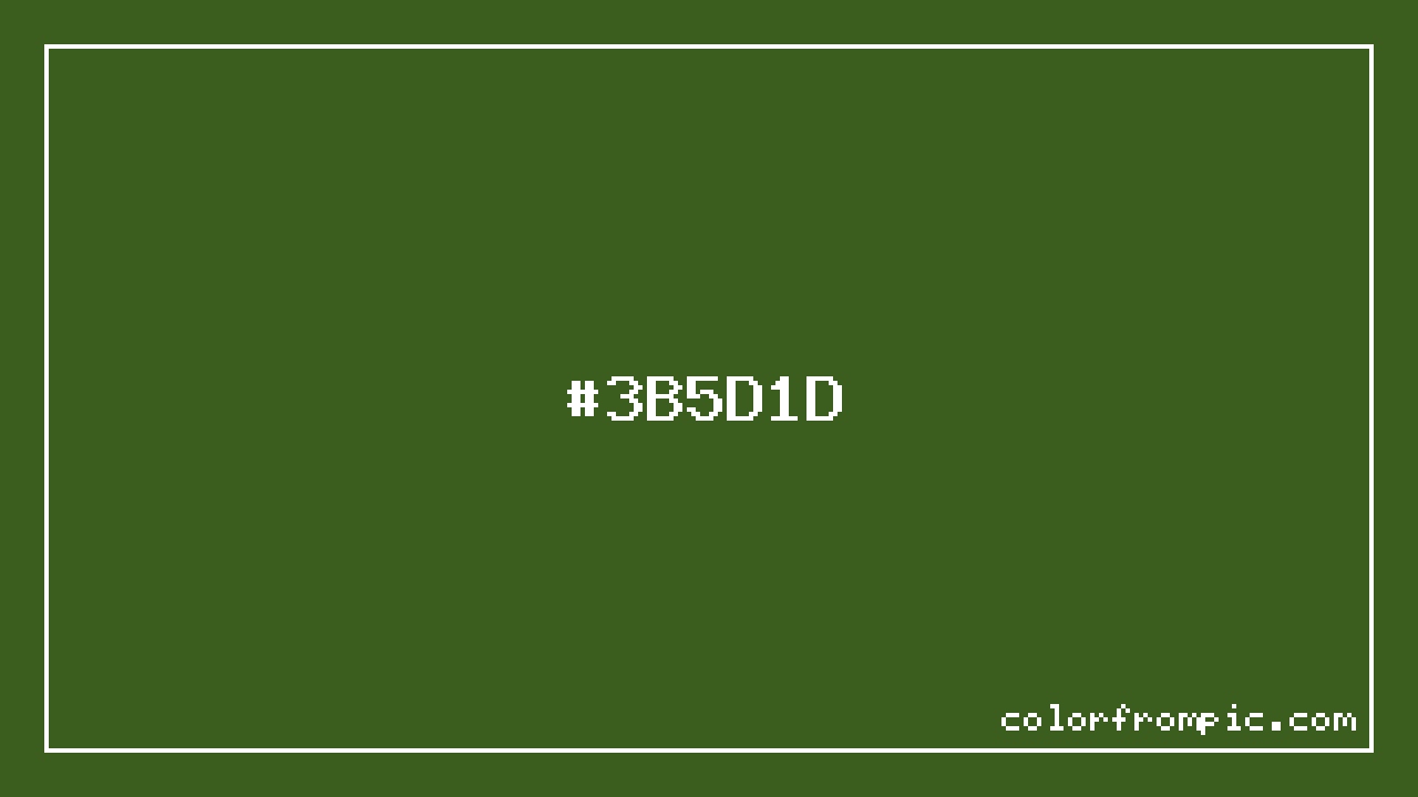 The hexadecimal color code #3B5D1D represents a dark shade in the green family. In the RGB color model, this color is composed of 59 red, 93 green, and 29 blue, which translates to approximately 23% red, 36% green, and 11% blue. This makes it a moderately saturated color with cool undertones that can evoke different emotional responses depending on its application.