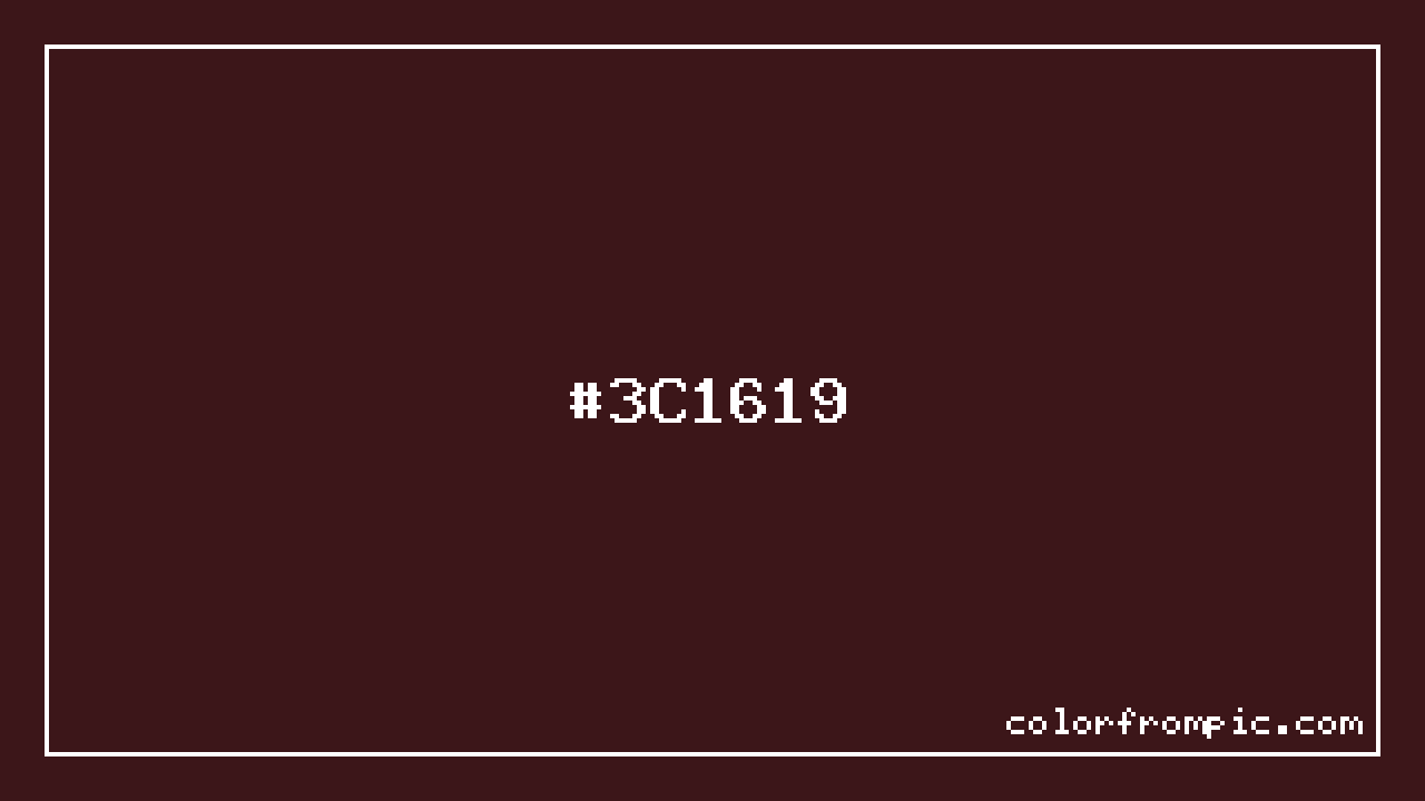 The hexadecimal color code #3C1619 represents a very dark shade in the red family. In the RGB color model, this color is composed of 60 red, 22 green, and 25 blue, which translates to approximately 24% red, 9% green, and 10% blue. This makes it a slightly desaturated color with warm undertones that can evoke different emotional responses depending on its application.