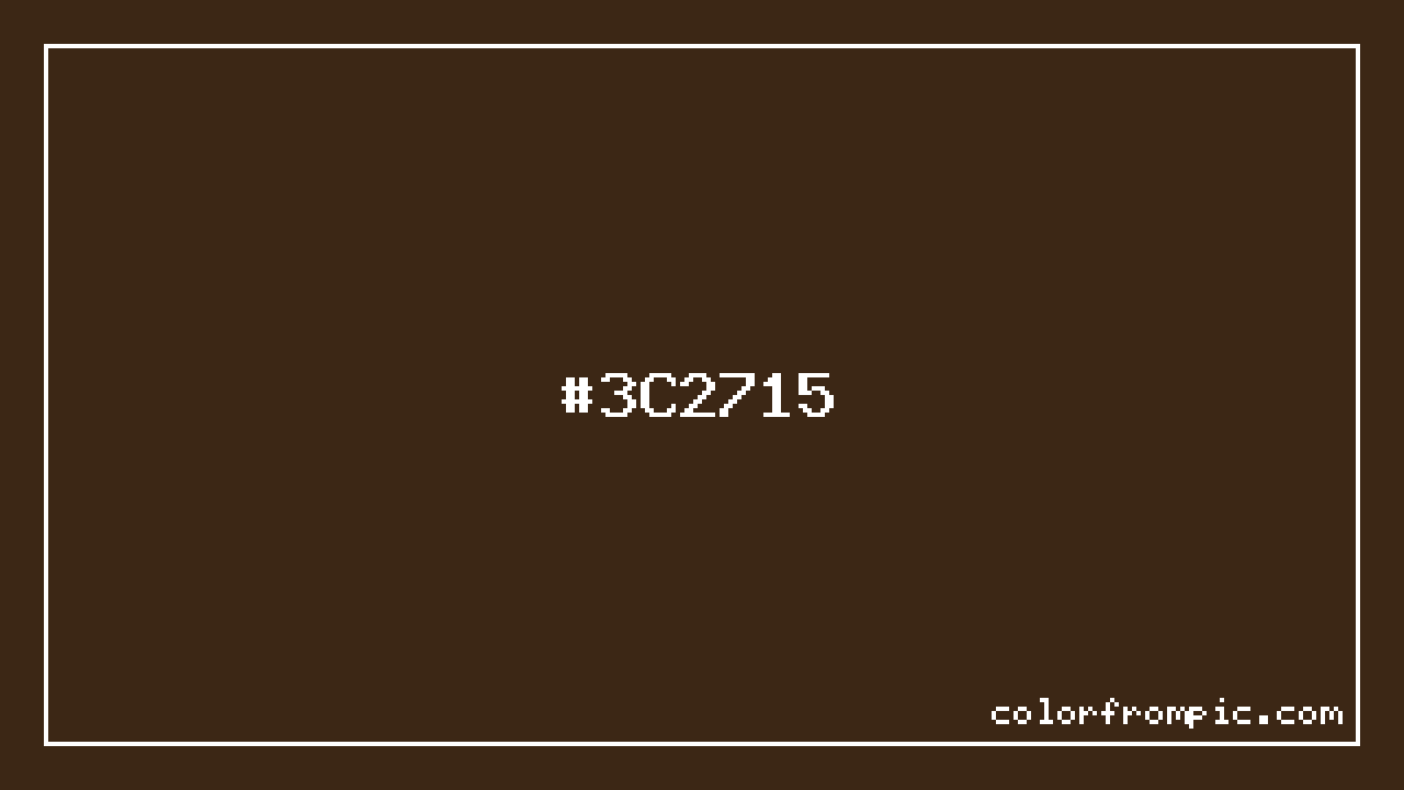 The hexadecimal color code #3C2715 represents a very dark shade in the red family. In the RGB color model, this color is composed of 60 red, 39 green, and 21 blue, which translates to approximately 24% red, 15% green, and 8% blue. This makes it a slightly desaturated color with warm undertones that can evoke different emotional responses depending on its application.